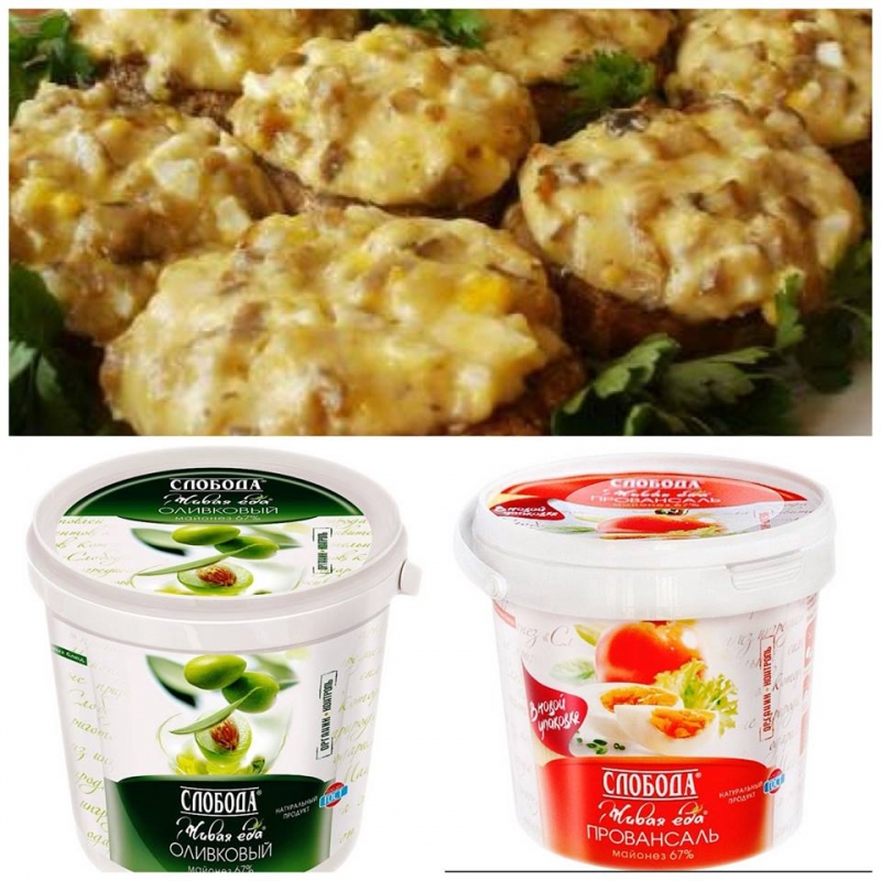 Շամպինիոնները լվանալ, գլուխամասերը առանձնացնել պոչերից: Պոչերը մանրացնել և սոխի հետ տապակել 5 րոպե: Պանիրը քերիչով անցկացնել, ձուն ձվածեղ անել և բարակ բարակ կտրատել: Պանիրը, ձուն և սնկի պոչիկները միասին խառնել, համեմել աղով, պղպեղով և ավելացնել մայոնեզը: Սնկերի գլխամասերի մեջ լցնել միջուկը և եփել ջեռոցում 180 աստիճան ջերմաստիճանում 15 րոպե: